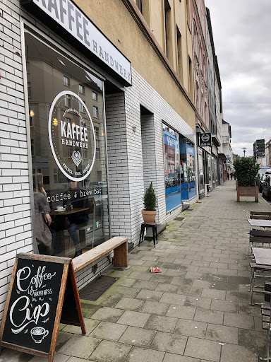 Kaffeehandwerk, another specialty coffee cafe in Dusseldorf, cozy indoor decorations, easy to park your bicycles right next to the store with the bike parking poles 城裡另一家精品手沖咖啡店Kaffeehandwerk,內裝cozy也有室外座位,如果騎車過來停車鎖車也很方便