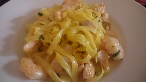 Read moreDas Essen war in Ordnung, aber nichts, bei dem man sagt "wow, hier müssen wir nochmal hin" Service wirkt auf den ersten Blick mürrisch/gelangweilt/genervt. Ist aber trotzdem sehr freundlich und aufmerksam gewesen. Das Ambiente ... sagen wir es mal so: Wäre es eine kleine Pizzeria, hätte ich es deutlich besser gefunden. So war es gefühlt ein viel zu großer leerer Saal, man fühlt sich eher verloren. Kein "wir gehen schön Essen und bleiben dann noch gemütlich mit Wein sitzen und haben einen netten Abend", sondern eher ein "wir gehen essen, weil wir Hunger haben und hauen ab, sobald...