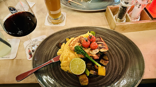 We went here for lunch. We reserved a table but that was not needed in the end. In a Saturday the area seemed relatively calm. But the place has a nice atmosphere, with an open kitchen/ bar and big windows that let in a lot of light. The staff was friendly and asked repeatedly if we liked the food. They gave us a QR-code at the beginning and we could order through that but also we could call the waiter. I liked the system because it goes fast and we can do your stuff in our time. The food was okay. We took a Flammkuchen with tomato, feta and Rucola and a pea soup. The food was okay for us but maybe not the best. Especially for the price it felt to us that the quality maybe was not really accordingly. Overall is was a solid experience for us and we would also...