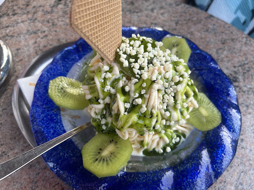 Die Auswahl an Eissorten und Desserts kann sich sehen lassen. Mein Favorit: das Spaghetti-Eis – eine perfekte Kombination aus cremigem Vanilleeis, fruchtiger Erdbeersoße und frisch geriebenem „Parmesan“ aus weißer Schokolade. Auch die frisch gebackenen Waffeln sind ein Highlight – außen knusprig, innen weich und mit einer großen Auswahl an Toppings.
