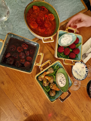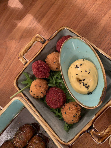 Read moreLeider an Hand der Bewertungen mehr erwartet, leider müssen wir einigen Nutzern hier auch definitiv Recht geben. Wie gehen oft essen, daher kennen wir den Markt samt Preise in ganz Deutschland, und hier passt der Preis-Leistung in kleinste Weise. 6 Micro-Falafel mit Dip, 30ml Alioli (ohne Olivenöl, Milch-Variante) mit 3 Scheiben Brot, 4 Mini-Hackbällchen …für sehr sehr stolze Preise. Da bekommt man beim Spanier wirklich viel viel mehr für sein Geld. Das Geschnetz aus Kalb-Hüfte mit Bratkartoffeln die komischerweise mit Paprikapulver versehen waren, schmeckten auch wie Chips aus der Tüte. Die Spaghettini mit Trüffelpesto waren wirklich gut, nicht so ölig wie so oft in den meisten Restaurants. Die „Überraschung“, bestand aus Tortelloni mit Gemüse hat und etwas verwirrt, laut Kellnerin (nach dem Essen) waren die mit Steinpilz-Ricotta Füllung, unsere waren jedoch grün innen, also wahrscheinlich Spinat und nicht Steinpilze, die Tomatensauce dazu hatte einen orientalischen Touch der aber auch gut zum Rest passte. Die PannaCotta war etwas zu fest, nicht wackelig wie man sie kennt, die Mousse aus der weissen Schokolade viel zu süß und das Tiramisu schmeckte mehr nach Schokolade als nach Espresso und Likör wie wir es kennen. Da wir uns immer logischerweise an den Preisen orientieren beim bewerten können wir nicht mehr als 2 Sterne geben, weil das was man für sein Geld bekommt hier ist echt viel viel zu wenig. Erkennt man auch daran dass kein einziges Hauptgericht in einem Hauptgericht-Teller serviert wird. Schade denn wir waren nach so eine hohe Rechnung...