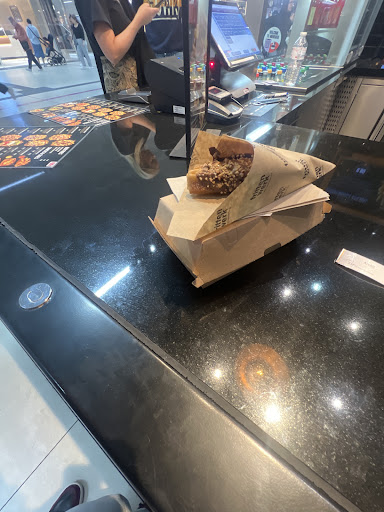The service is what you would expect of a fast food style restaurant. A downside is that you could feel that the staff was really rushed and too busy to help. However, using the names of famous people instead of order numbers was funny to see.