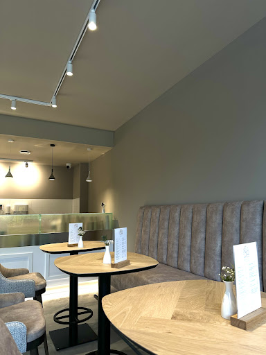 Read moreSchönes helles neues Café mit für Benrath überraschend großer Getränke und Kuchen Auswahl. Beides hat auch geschmeckt. Der Service wirkte noch etwas unerfahren/unbeholfen und es ist mir etwas unklar, ob man selbst vorne bestellen muss und sich dann setzt oder man bedient wird, gesehen habe ich beides. Wenn sich das etwas bessert, gibt es die fünf Sterne. Update: ich muss leider meine Bewertung um einen Stern kürzen. Bei weiterem Besuch waren die Mitarbeiter sehr kühl, kein bitte oder danke, nichtmal für einen Blick hochgesehen. Zieht leider die Stimmung etwas runter. Auch wurden die Getränke leider nur lauwarm gebracht. Vielleicht wäre noch ein Sonnenschutz oder Markise an den Fenstern gut, da die Sonne durch die Scheibe ziemlich einheizte. Überrascht über die vielen Besucher mit Kinderwagen die ihn auch gleichzeitig alle mit zum Tisch nahmen, aber immerhin gibt es dort dafür noch genug Platz. Gut, dass Kartenzahlung möglich ist und es...