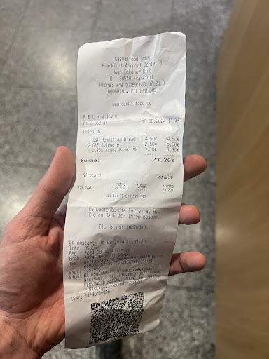 Terrible service - first there were two bugs in my mint tea because they didn't wash the mint properly and the waitress was a bit moody when changing this then the same waitress shortchanged us 5 euros then had a go at us when we pointed it out saying we should have noticed right away as she was doing it (we noticed 5 seconds later but she had already left) - she said people do this all the time - basically implying we were trying to steal from her. When we said there was no need to be rude she started arguing that it was our fault. The change she gave us made no sense and would not have been right for any note and when correcting her mistake -reluctantly - she gave us too much change proving the woman has no basic maths skills. As we left it was obvious she was slagging us off in german to the other staff. Disgusting. My mum and me are in dusseldorf airport due to a cancellation on our original flight so we were already having bad luck having never meant to be in Germany at all today. Not a great first impression. Really upset my mum who was already upset about all the extra travelling. Avoid...
