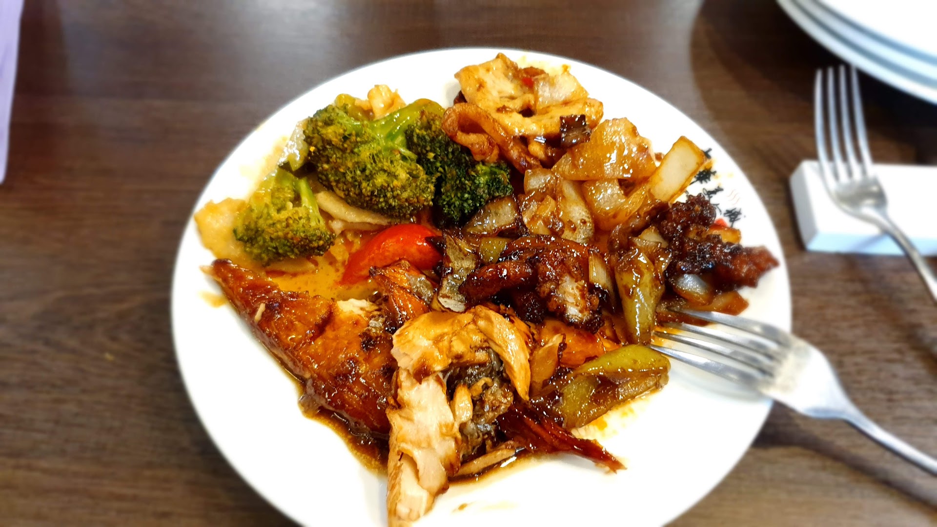 The restaurant has a huge selection of Mongolian grill and hot and cold dishes. The grill offers a nice variety of fish, meat and poultry (even alligator, deer and wild boar meat). The dishes that are part of the buffet include (but are not limited to) steamed dumplings with various fillings, curries, Chinese specialties, fried foods, sushi, teriyaki salmon and tons, tons more!