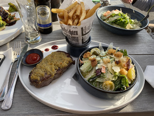 Leider war das erste, was der Kellner uns mitteilte, dass es heute fünf Gerichte nicht geben würde. Bei der übersichtlichen und sehr teuren Karte wurde die Auswahl so schon sehr eingeschränkt. Eine kleine Karte ist ja nicht schlimm, wenn es dann aber einen Großteil nicht gibt ist das bei den hohen Preisen schwierig mit der Auswahl. Da wir aber alle Hunger hatten einigten wir und auf insgesamt vier verschiedene Gerichte. Drei Mal Rinderbäckchen, ein Schnitzel mit Süßkartoffelpommes, Penne Al Arabiata und Tagliatelle Parmesan Trüffel mit Rucola. Das Essen kam recht schnell. Leider waren die Rinderbäckchen sehr durchzogen und für den Preis war die Portion und Soße sehr übersichtlich. Die Tagliatelle, welche extra mit Rucola angepriesen wurden, waren mit Blattspinat und schwammen in Wasser. Zudem waren unter die Tagliatelle ein paar Spaghetti geraten. Die Penne und das Schnitzel waren lecker.