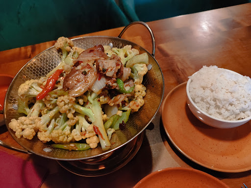 Das absolute Highlight war die Hauptspeise: gebratener Blumenkohl mit Schweinebauch. Ich habe selten so ein köstliches Gericht gegessen. Selbst der simple Reis dazu war von sehr guterQualität. Als jemand, der 2000 in China war, kann ich sagen: Das war absolut authentisch!