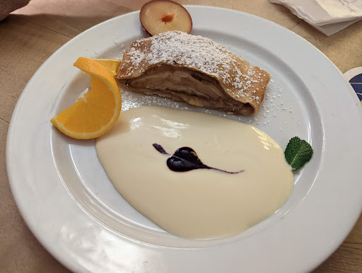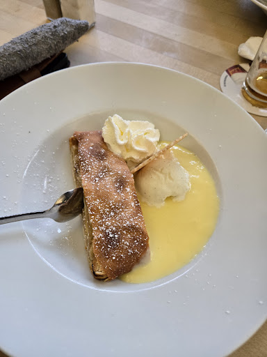 Fine restaurant with a typical German cuisine. My favourite is mostly the Schweinshaxe, but this time I went for the cordon bleu, which is really tasty when properly prepared. It taste good, but not specially good. The fries where also fine but nothing special. They could have been a bit more royal with mayonnaise instead of a small 5gr tube. It was a busy day and the service was a bit slow, but the staff was always friendly! Not a bad restaurant, but when you want to enjoy a nice beer, do not take the Frankenheim Alt, cause it's not something special at all. The apfelstrudel was enjoyable, still warm and a...