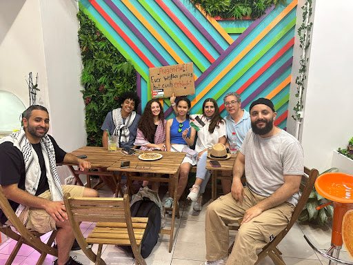 The pistachio dessert on the green plate is a unique combination of creamy ice and nutty richness, drizzled generously with a pistachio sauce. It’s a perfect balance of sweet and savory that you don’t often find.