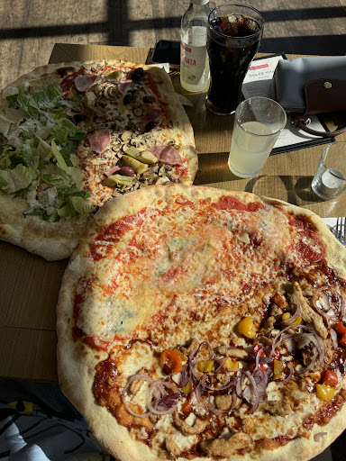 Read moreThe pizza was interesting, something that we didn’t tried in Germany before. They have an offer where you can order 2 big pizzas (check the photo) made from 4. For example, you order Margherita with Quattro Formaggi (half from Margherita and half from Quattro Formaggi). This gives a bigger variety and you can have a taste from more types of pizza. The place is also nice but needs some improvements. How you can see from the pictures, the sun was “hitting us”. It’s uncomfortable to stay and try to have a decent meal in the middle of the day and in the same time to sweat. At first when we got there we asked the guys if we can have a table for 2 somewhere where we can hide from the sun. They didn’t tried to help us out and said “We only have these tables cause the other ones are reserved”. After staying there for like 1,5 hour, i noticed that those tables which were reserved were still empty. Anyway, the next uncomfortable thing was the guy who took our order. It was a big guy, we forgot the name, with an attitude that made us felt like we are wasting his time or something like this. He was not so friendly and helpful like a normal waiter should be and on top of that he made us feel uncomfortable, like i needed to order in a rush cause he didn’t had time for us or so. When pizza got there, nobody cleaned the table before and they just thrown the pizza on the table. We heard that in other places they put some sort of paper or newspaper on the table because of the big pizza, so the pizza doesn’t have contact directly with the table. I found that a little weird and not so hygienic to be honest. Even if they say, “yeah the table were disinfected and cleaned” before we got there, it’s still dust in the air…Definitely not...