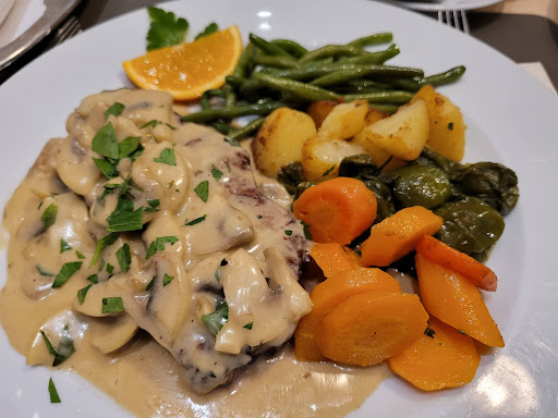 Der Mittagstisch vom Restaurant scheint sich jedoch einiger Beliebtheit zu erfreuen (besonders bei betagten Senior/innen)- auch eine Freundin von mir hatte ihn mir empfohlen : denn nach 13.00 Uhr muss man/frau auch schon mal an der Theke auf einen frei werdenden Platz warten.