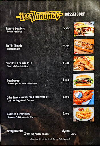 Yediğim en iyi kokoreçlerden biri olduğunu söyleyemem, Çok fazla kimyon basılmıştı tadını alamadım. Oturduğum masa biraz yapış yapıştı. Ayrıca baktığımda bu çevrede başka kokoreççi bulamadığım için buraya gittim ama sanırım tek olduklarının farkındalar bu nedenle fiyat pahalı bence.10 adet midyenin fiyatını gördüğümde şok oldum, ayrıca bir ayran 1 yarım kokoreçe 13.5 euro verdim düsseldorftaki yemek fiyatlarıyla karşılaştırınca da pahalı olduğunu düşünüyorum.Tabiki fiyata bakarak gittim ama eleştiri yaparken bunu da işin içine katma hakkım olduğunu düşünüyorum. Doyuruyor ama naçizane tavsiyem baharatlı daha orantılı kullanmalarıdır. Güleryüzlü tatlı bir servis vardı bir kerelik denemiş oldum .Diğer yorumlarda gördüğüm gibi herhangi bir çay ikramı bana yapılmadı ama belki de sipariş etmeliydim bilemiyorum.