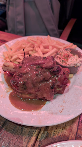 Read moreWait staff friendly, but took forever to get an order placed and almost twice as long to get the bill once we finished. The Frankenheim Altbier was good, but have had better. The pork knuckle was cooked very well, moist and flavorful. The Schweinschnitzel trilogy was not good. The pork scallops were not pounded thin, so the meat was tough and dry. The pepper sauce was not peppery. The mushroom sauce was good, and whatever the red sauce was, it was not Hollandaise, which is what the menu says it should be. Whatever it was, it did not go well with the schnitzel. This is one of the few places i have seen where they actually had ketchup and mayo (both Hellman’s) containers on the table. Most places give you a small container of one or the other and charge extra. Seating outside was nice, warm from heaters or blankets or both, and dry from the rain because of...