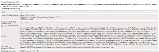 In der Kontrolle vom 29. Juli 2025 wurden allerdings schwerwiegende Mängel im Bereich Hygiene und Schädlingsschutz festgestellt: