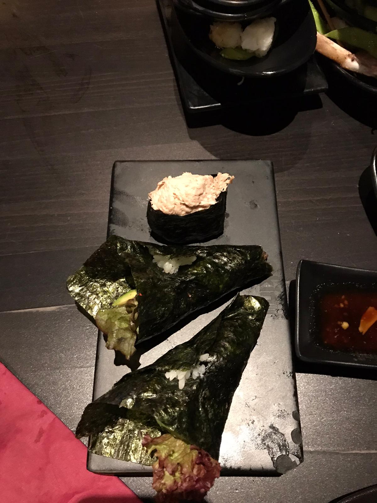 The dishes they served were tasteless, out of balance (waaayyyy to much rice everywhere!!) and some of them were plain old (like the shrimps!! old and mushy!! ) The sushi was rolled obviously by a very inexperienced "chef" (if you can call it that). The hand rolls looked horrible with again too much rice with rice sticking out of the rolls. And ALL of the other sushi rolls were again rolled with too much rice! The grilled salmon was a third smaller than the full slab shown in the previews/pictures. So you needed 3 orders to get the full salmon.. The cucumber was just that, tasteless sliced cucumber with no vinegar. They only poured some sesame seeds on top and called it a "dish" :( The soup came out without a spoon!