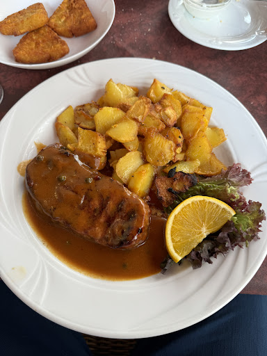 Read moreBestellt wurde das Rumpsteak "Lyoner Art" (Rumpsteak 200g mit karamelisierten Zwiebeln und Bratkartoffeln €17,50 und der "Madagaskar Teller" bestehend aus dreierlei Steaks. Einmal vom Schwein, eins von der Pute und ein Rindersteak serviert mit Kroketten (bei uns Rösti), Gemüse und Sauce Bernaise €14,50). Die Steak Variationen waren bei beiden Gerichten gut und lecker gewürzt, wobei das Schwein nach unserem Geschmack etwas trocken war. Das Rumpsteak war von ausgezeichneter Qualität. Es wurde Medium Rare bestellt und auf den Punkt getroffen. Tolle Röstaromen. Bei der Sauce Bernaise sowie den Rösti wurde mit Sicherheit auf Fertigprodukte zurückgegriffen (was erstenmal nichts wildes ist). Die Bratkartoffeln waren lecker und knusprig. Leider war das Gemüse (bestehend aus Broccoli, Blumenkohl und Möhren) stark versalzen. Vermutlich wurde es mit Gemüse Brühe gewürzt. Trotz der kleinen Mängel beim Madagaskar Teller waren die Speisen sehr zufriedenstellend und von der Menge optimal. Auf die Salat Orangen Garnitur kann ruhig verzichtet werden (nicht mehr Zeitgemäß - das Steak spricht für sich alleine gut) Die Servicekraft war zurückhaltend aber freundlich. Leider griff sie während ihrer Arbeit zur Zigarette, was einen negativen Eindruck machte. Gewünscht hätte ich mir ein Nachfragen, ob die Speisen schmecken oder ob es etwas zu trinken noch sein darf. Insgesamt waren wir aber mit dem Service zufrieden und vom Ambiente und den Gerichten angenehm überrascht. Gerne wieder. Preis Stimmt mit Leistung überein. Extra wünsche wurden berücksichtigt. Für Gemüse und Rauchen je einen...