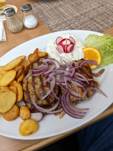 Read moreDie Atmosphäre ist freundlich aber nicht so wirklich Griechisch. Deshalb einen Stern Abzug. Aber es ist hell, freundlich und gemütlich eingerichtet. Das Personal war aufmerksam und höflich. Die bestellten Getränke kämmen sehr schnell. Das Essen wahr sehr lecker und wurde schnell gebracht. Es ist zu beachten daß die hier genannten Bratkartoffeln nicht das sind was man sich im allgemeinen darunter vorstellt. Es sind frittierte Kartoffelscheiben, aber nicht schlecht. Im ganzen kann ich nur sagen das es uns geschmeckt hat und wir jederzeit wieder kommen würden. Aber wie immer, das sind unsere Erlebnisse dort und unsere Geschmacks...
