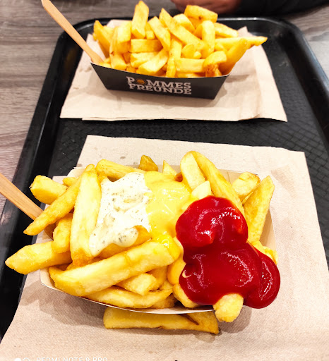 Read moreMein erster Besuch bei Pommes Freunde in Bilk. Ich werde geduzt - ok, vielleicht ist das in "modernen Läden" so. Die Pommes sind die großen, nach holländischer Art. Meine waren, mehlig-und nicht crispy. Wer sich "pommes Freunde" nennt, sollte wissen, das pommes 2x frittiert werden.Einmal zum garen, dann kurz raus, die fritte wieder heiß werden lassen - und dann noch mal 30-60 Sekunden, zum richtig geil cross werden. Die pommes waren erbärmlich. Meine waren zum mitnehmen und mit majo. Als ich zu hause probierte, schmeckte die "majo" wässrig, sie war auch unnatürlich schneeweiß - und geschmacklich einfach schlecht. Da dämmerte es mir. Man hatte mir einfach ungefragt "vegane Mayonnaise", ein künstliches Produkt untergeschoben. Die habe ich dann runter gekratzt und die Pommes mit meiner eigenen holländischen majo versehen