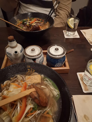 Just tried this restaurant last night while visiting Düsseldorf for the weekend. To say that my family was disappointed would be an understatement. We ordered 3 different ramen soup dishes, 1 ramen wok, 1 order of mini egg rolls, and an order of dumplings. First and foremost, the cost for what you get is ridiculous. Secondly, the food was less than good. Let's start with the ramen... The "ramen" was not ramen, I've had many a ramen, and that was not it. The "ramen" noodles were THICK and larger than even udon noodles, the flavor wasn't great either. The broth tasted of basic chicken broth almost, and the pork (I assumed based on every other time of getting ramen that it would be pork belly... WRONG).. was just slices of dry cooked pork tossed in there. The broth was just flavorless. This also went for the chicken ramen. My daughter got the coconut shrimp one, while the broth was good.. again the noodles were disgusting. Out of all of the meals, the ramen wok was the best. But GET THIS... completely different noodles. How are they both "ramen" but neither is actually made with ramen noodles? We've never spent so much money on food and been so disappointed, trashed almost all of it. GREAT takeout plastic...