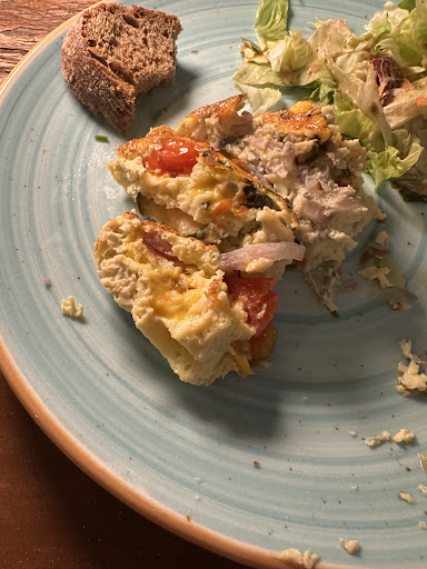 The omelette was more quiche/spongy like. “Instant” salad from supermarket bags