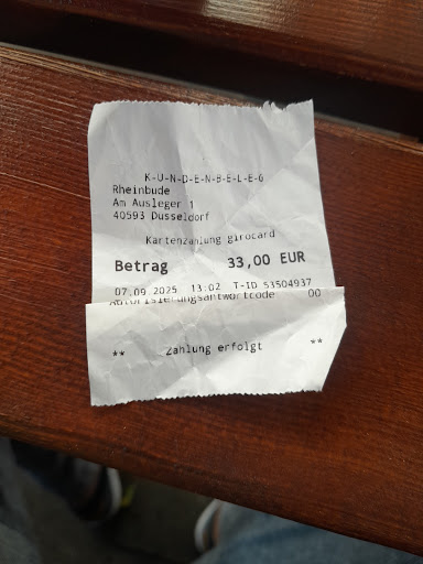 Wir haben am vergangenen Samstag einen runden Geburtstag mit knapp 70 Personen in der Rheinbude gefeiert. Es war ein perfekter Abend, der um 19 Uhr begann und um 2 Uhr dann zu Ende ging. Wir hatten mit einem lauen Spätsommerabend richtig Glück mit dem Wetter - die Gäste konnten sowohl drinnen als auch draußen stehen oder sitzen und direkt auf den Rhein schauen. Kai-Marcel und sein Team haben alles perfekt organisiert und durchgeführt. Es gab ein BBQ-Grill-Buffet, bei dem das Fleisch und das vegetarische Grillgut direkt vom Grill kam. Die Salate und anderen Beilagen waren in kleinen Gläsern vorbereitet. Es hat hervorragend geschmeckt und die Menge war mehr als reichlich. Zu Trinken gab es alles, was man sich vorstellen kann. Der rote als auch der weiße Hauswein war wirklich gut, dazu gab es Aperol-Spritz, Sekt sowieso und alle möglichen Bier und Biermischgetränke. Von den Säften, Schorlen und Limos ganz zu schweigen. Wirklich toll. Kai-Marcel und sein Team haben bis zur letzten Minuten einen exzellenten Service geliefert. Keiner musste Schlange stehen oder auf sein Getränk warten. Kein Weg vom Tresen oder der Küche bis zur letzten Strandecke war zu weit. Wirklich spitze. Danke Dir Kai-Marcel und Deinem Team. Es gibt Abende, da stimmt eben alles - auch die Dramaturgie mit dem nächtlichen Gewitter und Regen um 3 Uhr. Dafür gibt es von mir 10...