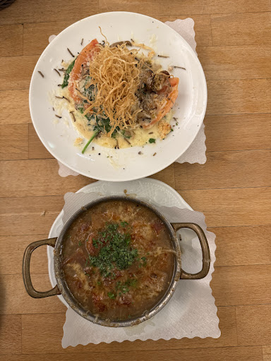 Somit wunderten wir uns dann auch nicht mehr über die aus unserer Sicht desolaten Zustände dort im Service. Wir wurden erstmal gar nicht bedient. Dann kam letztendlich doch mal ein Kellner, der uns eine Karte brachte und nach einiger Zeit die Bestellung aufnahm. Leider stellte sich dann jedoch nach gefühlt langer Zeit des Wartens heraus, daß er die Bestellung vergessen hatte und kam hektisch zurück um die Bestellung erneut abzufragen. Leider hat er sich davon nur die Hälfte gemerkt wie uns schien, da wir mehrfach an teil der Bestellung und richtigen Reihenfolge (Vorspeise und Hauptspeise) erinnern mussten.