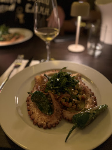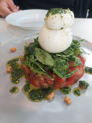 Great new spot in Pempelfort. Elegant without being pretensious. The outside sitting area on a quiet green plaza is perfect for Summer. Mediterranean, fresh, well seasoned food. It's a short menu, which is always an encouraging sign. Less things usually mean more attention to detail. We had the tomato salad with burrata as a starter. So generous it could be a main dish, as well. As mains, we had the steak and a special of the day. Balanced flavours and textures. Only comment is that both were very rich (I would probably cut on the sauces - a steak with chimichurri, meat sauce, cheese on top of the polenta and a rich ratatouille were delicious, but a bit too much). The open kitchen is a nice touch if you like to watch the chef's activity. Service is super friendly and attentive. We really felt taken care of. We will be...