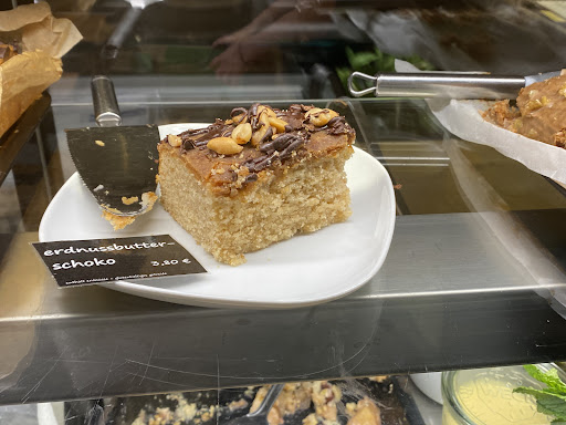 If you looking for nice food for your sweet tooth afterwards, you should definitely try the cake and coffee there. Especially the peanut butter chocolate cake and carrot and walnut cake are recommended for vegans and plant-based people in Düsseldorf.