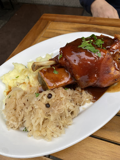 Read moreI have visited this place on 24.04.2022. We ordered Schweinhaxe (Pork knuckle), the portions are big. The meat was delicious, tho a bit too salty. The sauce could have been more. The mashed potatoes and Sauerkraut were okay, not "tasty" but just OK. Taste-wise, I would prefer the one I ate at Schumacher Brewery. One other minus point is that you HAVE TO order something to drink, and water costs +5€. I cannot get it why.