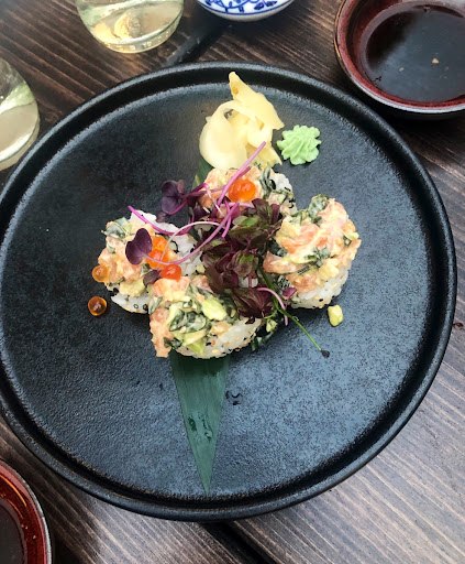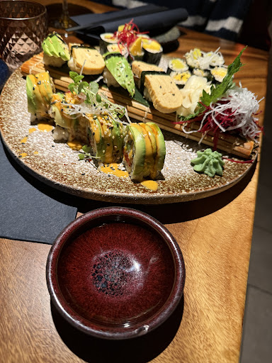 The food itself was a delightful surprise. We enjoyed every bite of the tuna and surf & turf rolls, both fresh and full of flavor. The dumplings were perfectly crispy, and the special chicken karaage was hands-down one of the highlights of our meal, boasting a tender, flavorful profile we couldn't get enough of. We also tried the Korean spicy fries, which added a unique, satisfying twist to our meal with just the right amount of heat. Each dish was presented beautifully and came in generous portions that left us feeling more than satisfied.