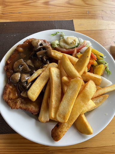 Dieses kleine Lokal befindet sich in einem Industriegebiet von Düsseldorf (in der Nähe von Gebrauchtwagenhändlern, Werkzeuggeschäften, Waschstraßen usw.). Es bietet nur Frühstück und Mittagessen an. Die Gerichte sind preiswert, um die hart arbeitenden Leute hier zu unterstützen, doch günstig heißt hier keinesfalls ohne Hingabe. Die Frikadellen schmecken wie hausgemacht – unverwechselbar anders als die Supermarktprodukte – und das Schnitzel wird gründlich vom Koch mit dem Hammer bearbeitet.
