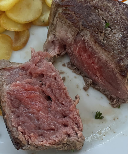 Also, ich musste ein paar Tage darüber nachdenken ob ich diese Bewertung schreibe oder nicht. Am Ende habe ich mich dafür entschieden und hoffe dass die Mitarbeiter dieser Laden sich darüber Gedanken machen. Wir waren zum Geburtstag eines Freundes dort und haben uns mega darauf gefreut. Ich habe viel Erfahrung mit spanischen Restaurant und ich dachte mir dass es richtig gut sein wird. Wir haben erstmal Getränke und Vorspeisen bestellt . Alles war gut bis und Personal auch. Was mich irritiert hat war das man von verschiedenen Kellnern bedient wird obwohl das nicht so sein sollte. Das kenne ich mindestens von professionellen Spania. Wir haben Hauptspeisen bestellt und ich hatte Rumpfsteak. Wenn es um Steak geht, kann ich auf jeden Fall mitreden aber diese mal war es eine reine Katastrophe. Als ich mein Steak bekommen habe, habe ich es es natürlich durchgeschnitten um mich von „Medium“ vergewissere. Als ich das Fleisch durchgeschnitten habe, war ich echt schockiert, und wenn ich meine schockiert dann wirklich so. Das gleich sah aus wie ein Stuck Plastik und von innen komplett roh. Leider habe ich kein Bild davon. Natürlich habe ich eine Kellnerin darauf angesprochen und sie meinte zu mir dass sie das tauschen wird. Jetzt kommt die Bombe. Das war echt der Hammer. Die Kellnerin kommt ganz frech zu mir und will mir erklären was Medium bedeutet. Sie hatte mein Rumpfsteak in Scheiben geschnitten um mir zu zeigen das es Medium sei. An dieser Stelle musste ich wirklich schlucken. Das Fleisch sah aus wie Plastik, und ich dachte mir sie will mir jetzt zeigen wie ich mein Fleisch haben möchte und danach ist es mir aufgefallen dass es mein Steak war und sah nicht ansatzweise wie Fleisch aus. Sie meinte dann zu mir dass es kein Rumpfsteak mehr gibt, was natürlich erklärt warum es so war. Ich kann meine Hand ins Feuer legen dass der Koch das Fleisch einfach aus Gefrierfach rausgeholt hatte und angebraten. Deswegen habe ich argentinische Fillet bestellt und da Bild sieht ihr. Ich war einfach enttäuscht. Die Kellnerin ist nochmal zu mir gekommen um zu schauen ob alles in Ordnung sei. Ich habe es ihr das Fleisch gezeigt und meinte zu ihr sie soll selbst ihre Meinung dazu machen. Sie hat daraufhin geantwortet, ich zitiere:“ haha ich habe es nicht gekocht“. Ohne jegliche Entschuldigung. Und ich denke mir als Kellnerin präsentiert man den Koch und es war auf gar keinen Fall professionell von der Mitarbeiterin. Und es passiert wenn jedes Mal man von jemand anderen bedient wird. Am Ende wollten das Restaurant das Steak auch abrechnen was ich sehr fatal fand. Natürlich war es eine andere Kellnerin die abrechnen wollte und hatte keine Ahnung was wir das bekommen haben. Wir haben ihr die Bilder gezeigt und sie meinte dass sie das nicht abrechnen wird. Also Appel an den Koch. Man serviert nicht das letzte Stuck Fleisch an Kunde. Bitte ändert eure Methode mit den Kellnern. Jede Kellnerin soll ihr Bereich bekommen um sich besser mit den Situationen...