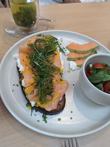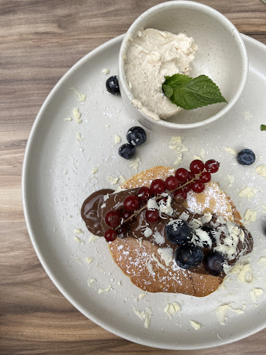 The good points: Service is friendly, fast and efficient with excellent English. The homemade spritzers are absolutely delicious. Ambience is lovely, bright and has a "hygge" vibe. Very welcoming, although some of our party thought a splash of colour wouldn't go amiss, it is very beige. Amazing concept. Düsseldorf is in dire need of breakfast/brunch options during the week and the all-day bit is just an added bonus, really fills a gap in the market. Presentation is excellent - all the plating is just beautiful and looks like it is going to be very tasty, alas...