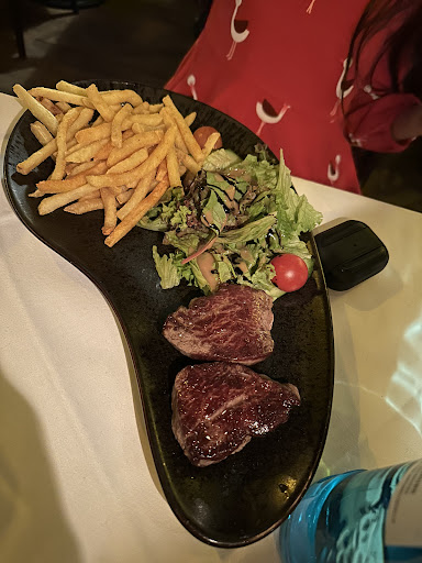 Quality does not match the prices. The tenderloin 300 gr. for 39 EUR does not even include some French fries... And the four pieces cut makes the meat go cold before you even reach half of it.