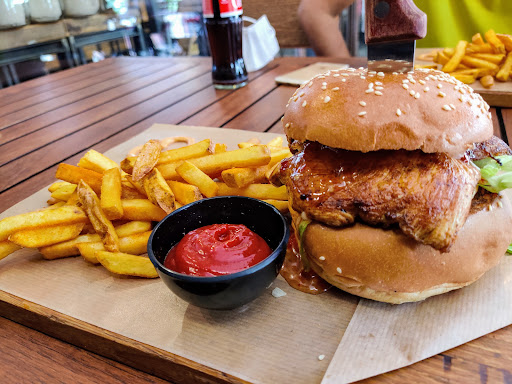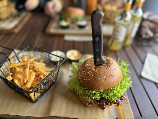 Die Burger waren sehr lecker! Jedoch haben wir mit dem Gutschein Buch dort gegessen und wurden übers Ohr gezogen ... im gutscheinbuch steht deutlich, dass man ein komplettes Menü gratis bekommt. Laut Karte ist ein Menü: Bürger, Getränk sowie Beilage! Uns wurden die Getränke extra berechnet. Zudem ist die Bedienung unmöglich. Der Kunde ist König heißt es doch so schön oder? Von wegen. Wir waren an einem Tag mit Graden zum 0 Punkt dort und wollten im Laden inneren gemütlich sitzen. Jedoch meinte die Bedienung die Tür komplett aufmachen zu müssen. Auf unseren Wunsch, diese bitte zu schließen meinte sie nur, dass ihr ja warm wäre und sie die ganze zeit rumlaufen würde und sie offen bleiben sollte, weil auch der Grill in der Küche Wärme ausstrahlen würde. Andere Gäste hatten das Gespräch nicht mitbekommen und daraufhin die Tür geschlossen, da die kalte Luft durch den Laden zog. Als die Bedienung dies bemerkte kam sie zu unserem Tisch und meinte genervt „habt ihr die Tür wieder zu gemacht?“ andere Gäste bekamen das nun auch langsam mit und schüttelten nur den Kopf. Die Bedienung öffnete die Tür erneut und wir zogen die Jacken an. Der Tisch neben uns ebenfalls und meinte auch „die gäste müssen hier frieren, nur weil der Bedienung warm ist oder wie? Unglaublich...“ Ingesamt war die Atmosphäre katastrophal und wir haben uns nicht erwünscht gefühlt, nur weil wir gebeten hatten die Tür zu schließen. Also saßen wir da, geöffnete Tür, Luftzug bei ca 0 grad durch den ganzen Laden und wollten so schnell weg wie nur möglich. Ein leckerer Burger kann es leider nicht entschuldigen, dass die Atmosphäre und das Wohlbefinden des Kunden unterste Schublade ist! Der Kunde sollte immer „König“ sein und die Bedienung sollte nicht nur auf ihre eigenen Belange gucken. So eine Dreistigkeit und das nicht vorhandene Verständnis dafür, dass Gästen kalt sein könnte, hat uns schockiert! Als es zur Abrechnung kam, wurden uns wie oben genannt, die Getränke extra berechnet. Auf die Frage was denn ein Menü sei, meinte die bedienung nur „burger und Pommes“. Es zu erwähnen, dass dies anders in der Karte steht, war uns dann zu doof, weil uns die Bedienung dann wahrscheinlich diese um die Ohren gehauen hätte .... Wir werden dort nicht mehr hingehen. Sehr schade. Ich hoffe, dass zukünftige Gäste sich diese Erfahrung zu Herzen nehmen und so etwas unfreundliches nicht zu Herzen nehmen. Hier steht ganz klar das Geld im Fokus und nicht die Zufriedenheit...