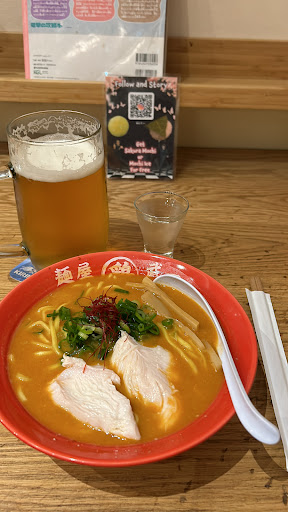 Read moreMy husband and I tried two ramen broths. The traditional one was nice and a bit more complex if you like fishy aftertaste (ingredients are written down, so no surprise there), but the chicken broth tasted literally just like boiled chicken. Both were ok, but for us, they felt more like a basic noodle soup than ramen. For the chicken karaage, they used the weirdest, gummiest pieces of chicken you could find - not really enjoyable to eat. The people were very nice and friendly, and we were served incredibly quickly. A bit of heating in the restaurant wouldn't hurt, but if you eat soup it gets better. All in all OK and better than some more hyped ramen restaurants, but not too much to our tastes. Don't go if you want a rich, complex broth with many spices. This is a...
