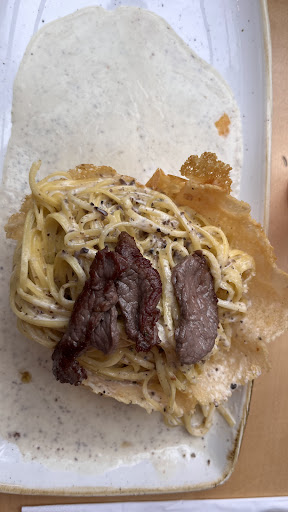 Read moreI had dinner here with my colleagues and we ordered the truffle pasta with parmesan. Some minutes later, the woman who took our order said they ran out of truffle so they offered to replace the truffle with beef or gambas. I ordered the truffle pasta with parmesan for the combination of both so there was no point for me to get that anymore. I told the woman I wanted to change my order and get something else instead. She said it has been made already and I can just choose beef or gambas. I chose beef. It was…ok… 5/10. I ordered tiramisu but it also did not taste good. I feel like they did not use mascarpone and used cream instead. 4/10. Thankfully a colleague paid for the meal. The only thing I liked is the Rhabarberschorle, which I...