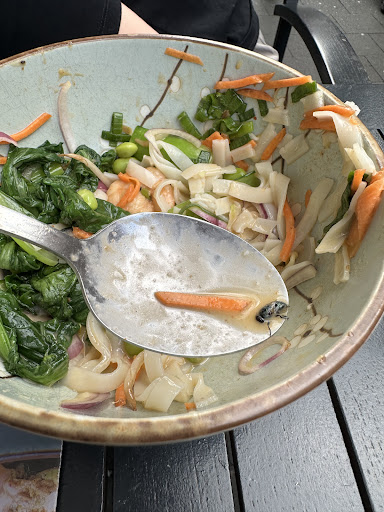 Read moreBin seit der Eröffnung 2018 regelmäßig dort. Esse oft die Nr. 8 (vegetarisch mit Tofu) Siehe Foto dazu. Dort habe ich den besten Tofu gegessen (klar, weil an-frittiert) ;-) Mit 11 Plätzen leider viel zu klein. Ich glaube aber auch nicht dass es ein Anspruch hat, ein Restaurant zu sein. Oft wird "zum mitnehmen" bestellt. Personal ist immer nett. Nimmt die Bestellung entgegen und gibt das Essen heraus. Ich würde es das "Subway-Prinzip" nennen. Es gibt vorgefertigte Bowls, oder man kann es sich auch selbst zusammenstellen. Zu erst wählt man die Grundlage: verschiedene Nudeln, Reis oder als Salat Dann wählt man fünf verschiedene Obst und / oder Gemüse Sorten. Als dritten Schritt wählt man die Proteinbeilage: Fleisch, Fisch oder Tofu Jetzt fehlt nur noch die Sauce: verschiedene, typische asiatische Saucen und zu Schluss noch ein Topping: Koriander, Sesam uvm. Vorspeisen wie Gyoza oder Suppen möchte ich nicht verschweigen. Die Preise von 8,50€ bis 11,50€ sind gerechtfertigt und meiner Meinung nach angemessen. Produkte sind immer frisch, gab bisher nie etwas zu beanstanden. Es gibt oft Sauce extra, wenn eich das Schälchen...