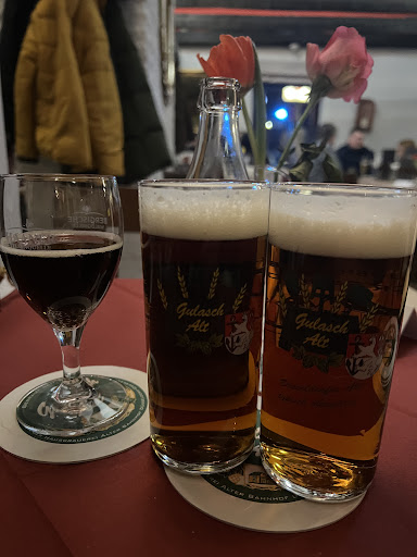 I went to Zur Alten Töpferei based on all the good reviews and I was truly impressed. I called in advance to make a booking, arrived early and Patrick led me to my table, with a personalised sign to confirm it was reserved. I chose a mixed German ‘antipasti’ platter - highlight for me was a fried piece of blutwurst with a crisp coating - utterly delicious. Next was the biggest serving of Schweinshaxe, glorious in its crackling and served on potato puree and sauerkraut. The (onion?) gravy it came with was perfect. Finally it was time for apfelstrudel with the most delicate vanilla sauce that matched it beautifully. All this was washed down with the restaurant’s own beer, Gulasch Alt, one of the best alt beers I have tasted, which matched the warm hearty flavours of the starter and main course. Finally, a digestif, the local killepitsch. Truly a five star service from start to finish, service was flawless and friendly, plates were removed without me noticing. No trip to Lohausen should be done without a visit to Zur...