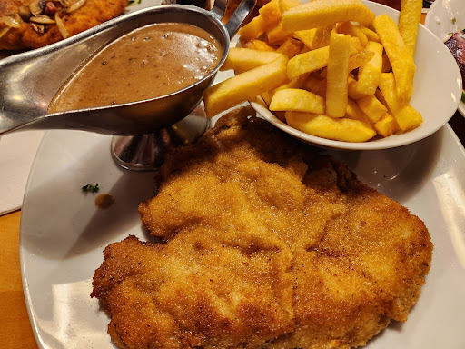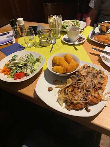 We stopped by here tonight without a reservation, and we were very lucky to get in - thank you to the waitresses for squeezing us in before the reservations started. My wife and I both ordered the Schnitzel - I had the peppercorn sauce, and my wife had the onions, bacon, and mushrooms. They both came with a side (fries were tasty) and a salad. The salad was very fresh and had the dressing under the vegetables - the more you stirred, the more ended up on the salad. The dressing was very tasty and you will not need more than what they give. The Schnitzel was delicious - I will say that my wife's may have been better hahaha. It was a very local establishment, and the waitresses were very friendly...and busy. I highly suggest making a reservation. Also, note that if you don't speak German, please be patient with the waitresses - their English is better than your German 🙂. Highly recommend this...