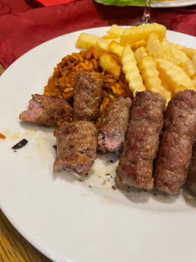Waren mit 6 Personen da. 3 haben Cevapcici bestellt. Haben diese, weil sie roh waren, zurückgeben lassen. Als diese das zweite mal gebracht wurden waren sie wieder roh und rosa (siehe Bild). Waren dann verständlicherweise wieder nicht zufrieden und haben diese wieder zurückgegeben. Danach hörte man vom Gastgeber: „Dann schmeiß die raus“, wonach dieser kam und meinte, dass sich das so gehöre. Ich will nicht wissen, wie er Cevapcici isst, aber roh essen tut man das nicht!