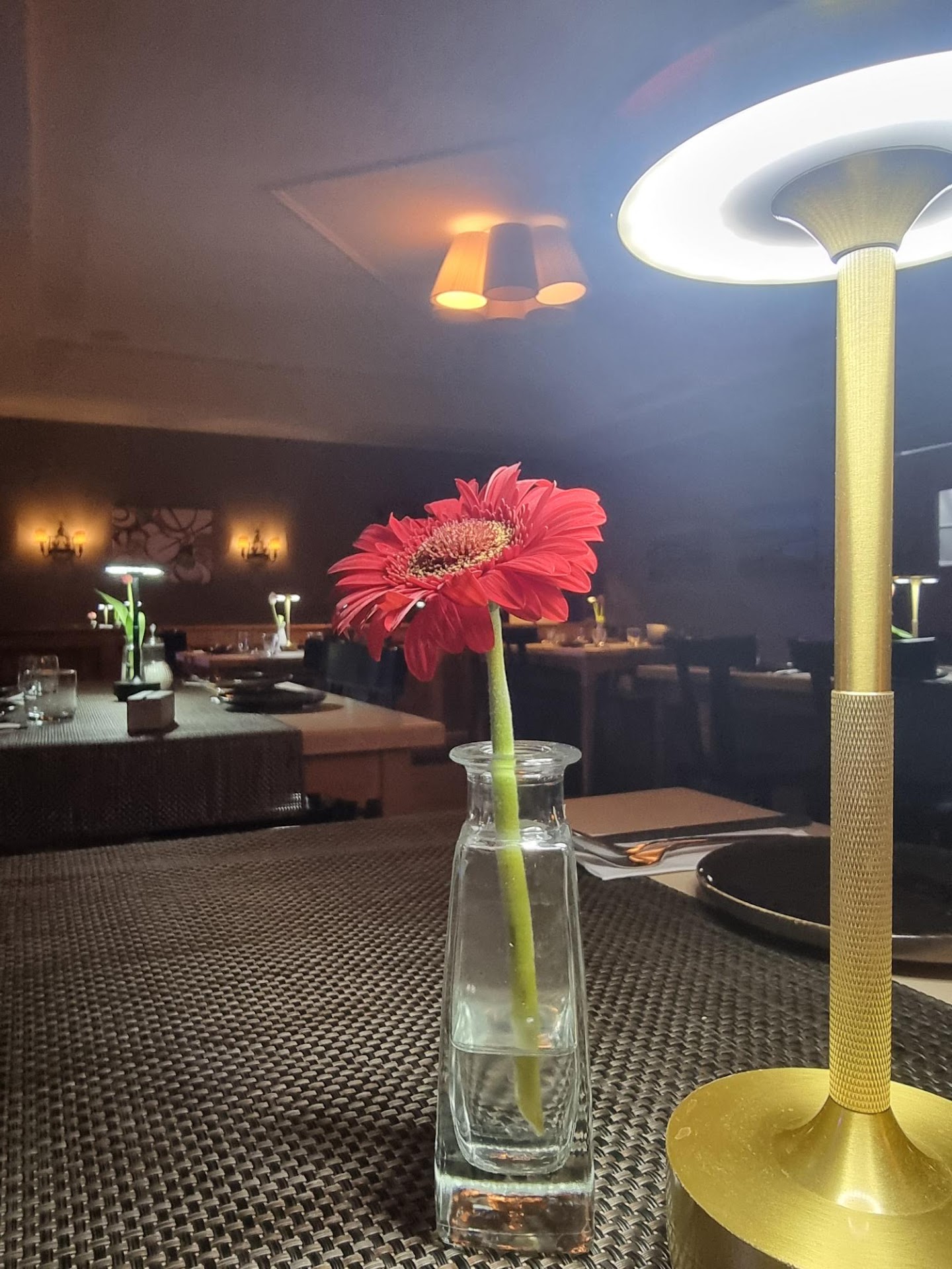 Das Restaurant ist innen geschmackvoll, rustikal und gemütlich, ohne jeglichen asiatischen Kitsch. Die Terrasse dagegen hat den Charme einer Bahnhofshalle mit ihren Funktionsmöbeln, die auf hungrige Golfer zu warten scheinen. Die Bewertung bezieht sich hinsichtlich der Sterne auf die Terrasse:-(