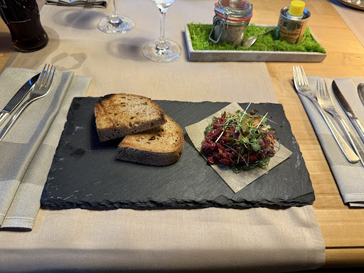 Read moreWir waren mit der Familie am 1. Weihnachtsfeiertag zum Mittagessen im Restaurant. 7 Personen + Kleinkind (eigene Speisekarte mit Malstiften). Es waren ausreichend Möglichkeiten zum Mäntel aufhängen vorhanden, obwohl das Restaurant gut besucht war. Zu Toiletten kann ich nichts sagen. Die Damen und Herren die uns bedient haben waren durchweg super freundlich, sehr aufmerksam und unaufdringlich. Empfehlungen und "Spezielles" das nicht auf der Karte stand, wurden gut präsentiert und erklärt. Die Einrichtung ist sehr schön in hellem Holz gehalten, mit tollen Details. Die Tischdeko war ebenfalls sehr schön. Sehr angenehm ist das die Tische nicht beengt stehen. Wir hatten unter anderem Hummersuppe, Gartensalate (Dressing kommt extra und ist super lecker), Beef Tatar, Ziegenkäse Crostini, Wiener Schnitzel vom Jungbullen, Rinderrostbraten mit Gemüse, Pappardelle in Parmesansauce. Essen bewerten ist wie mit Musik, Kunst oder Farben einfach Geschmackssache und individuell. Aber ich muss/darf sagen das ich schon ewig nicht mehr so gut gegessen habe. Selbst das Brot im Brotkorb ist selbst gemacht. Bratkartoffel, jegliches Gemüse, das Fleisch, Saucen...einfach alles war hervorragend. Jeder von uns war begeistert. So gutes Essen hatte ich bisher nur wenn die Portionen...na ja...sehr "übersichtlich" war. Das kann man in diesem Restaurant wirklich nicht sagen. Eigentlich bräuchte man keine Vorspeise. Andererseits sollte man sich die nicht entgehen lassen. Außerdem macht das Restaurant auch so was wie Themen-/ oder Mottowochen (oder Monate?) wo andere Speisen angeboten werden. Steakliebhaber kommen hier (bis zum Tomahawk-Steak) scheinbar auch nicht zu kurz, da Steaks immer angeboten werden. Wie nötig eine Vorbestellung ist kann ich nicht sagen. Für den 1. Weihnachtsfeiertag hatten wir natürlich vorbestellt. So gut wie das Essen hier ist, kann ich mir vorstellen das eine Vorbestellung immer eine gute Idee ist. Außerdem essendort ja auch Hotelgäste. Alles in Allem haben wir am Ende 360.-EUR plus Trinkgeld bezahlt. Und das ist alles andere als teuer. War sicher nicht das letzte Mal das wir dort waren. Danke nochmal an das Personal und "die Küche" für ein...