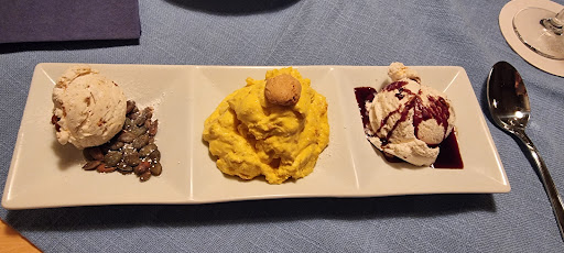 Ich bestellte Rösti mit überbackenen Pfifferlingen als Hauptgericht, das auch knusprig und auf den Punkt gegart war und schmeckte, jedoch konnte man von dieser Mini-Portion für 8,50 € auf keinen Fall satt werden. Ich bin kein Freund von großen Portionen, doch nochmal dieselbe Menge hätte ich schon gebraucht, um satt zu werden! Dann aber der Abschuss. Mein Sohn hatte ein Kinderschnitzel, bei dem die Pommes zum einen Teil labbrig, zum anderen Teil doppelt frittiert und somit hart waren. An dieser Stelle hätten wir es wieder zurückgehen lassen sollen. Erst spät bemerkte mein Sohn eine tote Mücke am Tellerrand, ohne Flügel, vermutlich mitfrittiert. Wir konnten es uns nicht erklären, aber es würde ins Bild passen, was fehlende Hygiene anbelangt. Leider war da nicht mehr viel auf seinem Teller. An dieser Stelle nachzukarten, bringt es nicht und ich hatte auch keine Lust, mir die noch relativ gute Reststimmung, die am Tisch herrschte, zu vermiesen. Ich hätte Fotos machen sollen, habe leider nicht geschalten...