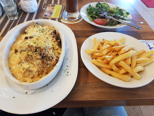 Read moreHotel mit Restaurant. Die Inneneinrichtung ist modern. Der Speiseraum wirkt optisch beeindruckend, ist aber für die Akustik nicht besonders förderlich. Parkplätze sind vorhanden. Die Getränke wurden fix aufgenommen. Es blieb ausreichend Zeit die Gerichte auszuwählen bis die Getränke serviert wurden. Wir hatten zu fünft eine Warme und eine Kalte Vorspeisenplatte. Hier ist das Preis/Leistungsverhältnis hervorragend. Zum einstimmen auf den Hauptgang war die Platte reichlich belegt mit allem was gängige Vorspeisen sind und geschmacklich auch sehr gut, hier gab es nichts zu bemängeln. Das dazu servierte Brot war auch echt sehr gut. Das Taramas war mMn. nicht selber gemacht aber in Ordnung. Tzaziki war sehr gut. Als Hauptgang hatte ich den Zeus Teller. Die Pommes dazu waren nicht gut, zu kurz frittiert. Das Gyros war richtig klasse, schön saftig und gut gewürzt. Mein souvlaki war unten verbrannt und dadurch sehr trocken, aber sonst vernünftig gewürzt. Die Calamari waren auf den Punkt frittiert und lecker. Die beiden Scampi waren sehr gut gemacht. Was mich irritiert hat war der Umstand dass auf allen Gerichten,Vor und Hauptspeise, jede Menge Oregano drauf war. Das Essen war auch ohne die Zugabe von Oregano gut, dies könnte man sich evtl. sparen. Alles in allem kann ich das Lokal empfehlen. Atmosphäre ist entspannt, der Service ist freundlich und schnell, reservieren...