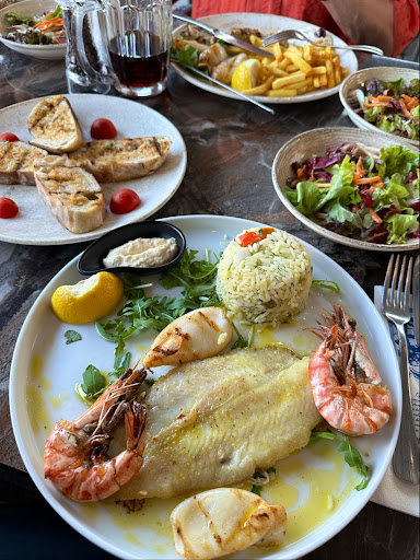 Read moream Samstag habe ich für meine Familie und mich dort bestellt, da ich selbst schon ein paar mal dort war und ich über das etwas andere griechische essen gefreut habe. Denn hier ist nicht alles wie gewohnt, sondern etwas mediteran angehaucht. Das merkt man bei ein paar Speisen auf der Karte. ich finde es gut wenn man versucht sich von den anderen, gibt ja mehrere grischische Restaurants, abzuheben. Diesesmal kam ich in das Restaurant und musste 10 Minuten warten, was aber kein Problem war. Mir wurde sogar ein Tisch und ein Stuhl zum warten angeboten inklusive Ouzo. Da ich aktuell keinen Alkohol trinken darf, habe ich ein Wasser bekommen. Super ! hatten 4xgyros mit Pommes bestellt, 2x Saganaki, 1x Lammkeule mit Spaghetti, 2xzakziki,1x Bauernteller und 1x Grillkäse auf Rucola mit Marmelade. Insgesamt waren wir sehr zufrieden und satt. ein Stern Abzug gibt es, weil der Salat uns zu einfach war, das Essen nicht mehr ganz so warm ( kann auch der Abholung geschuldet sein ), höhere Preise als bei der Konkurrenz, beim Grillkäse fanden wir es zu wenig Marmelade und beim bauernteller war das Steak und der suflaki etwas trocken und zäh. Alles in allem nichts großes und ein Besuch lohnt...