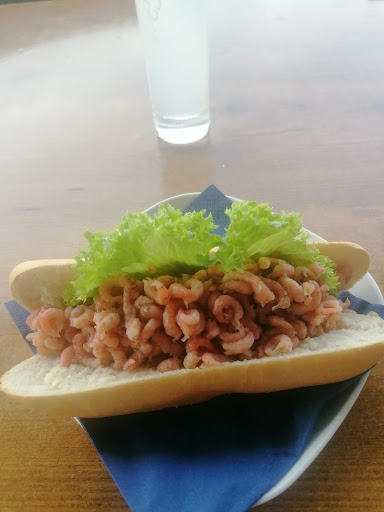 Alle Fischbrötchen werden frisch bei der Bestellung nach den Wünschen des Gastes zubereitet. An Fisch und Krabben wird nicht gespart. Auch ist Brötchen das falsche Wort, denn es werden frische ca. 15 cm lange Baguettes gefüllt. Auf Wunsch mit Salat, Mayo, Remoulade und Zwiebeln. Es werden immer zwei Filets gegeben, die reichlichen Krabben quellen oben und an den Seiten heraus. Die Preise dafür sind saisonabhängig. Der Matjes ist göttlich, ich empfehle besonders den Aalrauch- und den Sherrymatjes.