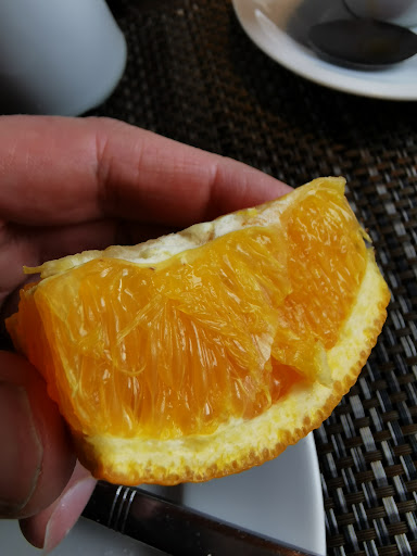 Wir kommen immer zum Urlaub hier zum Frühstück. Und sind noch letztes Jahr im April voll und ganz zufrieden mehrfach hier gewesen. Service ist absolut Spitze. Wir werden immer freundlich und zuvorkommend behandelt. Umso trauriger nun das Lokal nicht mehr zu besuchen. Der Online Karte ließ sich entnehmen. Das fischige Frühstück ist raus, aber das französische Frühstück existiert, aber nur online. Das Fitness Frühstück ebenso 😒 Das ist nicht real. 🤯 Für 30€ bekommt man für 2 Personen halbliebloses Frühstück Luzifer angereicht. Es dient der Sättigung, aber nicht der Gaumenfreude. Das absolute Highlight war neben dem angesäuerten Filrerkaffee die Dry Aged Orange 🦄 (siehe Bild) Trockenobst haben wir nicht bestellt. Nachtrag: Der zweite Kaffee war sehr gut. Ist vielleicht wie beim Bier. Auf einem Bier lässt sich schlecht stehen. Vielleicht sieht man sich irgendwann wieder mit der alten Frühstückskarte in der Zukunft. Ansonsten wünsche ich den ganzen netten Luzifer Team weiterhin viel viel Erfolg und Spaß bei der Arbeit.