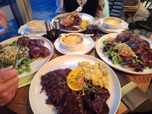 Wir waren am zwei aufeinander folgenden Tagen hier. Beim ersten Mal haben wir etwas getrunken und gegessen: Currywurst mit Pommes und Spaghetti mit frischem Marktgemüse in Currysoße. Wir kommen aus dem Ruhrpott. Die Currywurst hier ist eine Bock und keine Bratwurst, schmeckte jedoch sehr gut und hatte eine tolle Soße. Die Pommes hätten etwas mehr sein können, für 12,50€, schmeckten jedoch auch sehr gut. Highlight war kleine Tomatensalat in leicht öligem Dressing, das sehr gut geschmeckt hat.