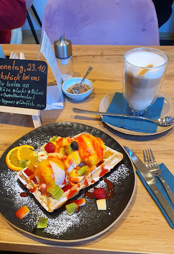 Read moreSehr hübsch gestaltete Eismanufaktur in einem schönen Pfälzer Weinort. Hier werden für unseren Gaumen sehr schmackhafte Eissorten wie Pfälzer Traube, Esskastanie und Orange mit Rosmarin serviert. Die Belgische Waffel mit Sahne, Früchten, davon unter anderem sehr leckere und saftige Orangenscheiben, Erdbeersoße und den 2 zuletzt genannten Eissorten schmeckte mir sehr gut. Unter den Soßen, passend zu den Waffeln, konnten wir zwischen Schokolade, Mango und Erdbeere auswählen. Der Latte Macchiatto, aufgrund seiner sehr angenehmen und kräftigen Röstung der Espresso Bohnen, genoss ich mit dem dichten und schmackhaften Milchschaum sehr. Die Bedienungen waren trotz hoher Anzahl an Gästen sehr aufmerksam. Und akzeptable, kurze Wartezeiten habe ich sehr gerne in Kauf genommen, dafür was hier einem an feinen Köstlichkeiten angeboten wird gleicht sich das Warten wieder aus. Die Toiletten sind sehr sauber und...